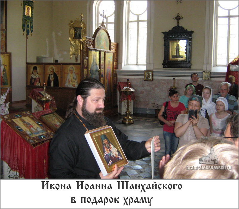 Совсем недавно, в мае этого года буквально на несколько часов в собор приехала делегация, в составе которой был священник из Джорданвиля – отец Иоанн. Он привез с собою икону святого Архиепископа — Иоанна Шанхайского с частичкой мощей. Икона святого Иоанна простояла в соборе не больше часа и многие самаркандцы сожалели, что не успели к ней приложиться, но отец Иоанн оставил в дар Алексиевскому собору другую, небольшую, но очень красивую икону этого же святого, освященную на мощах Иоанна Шанхайского.