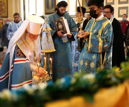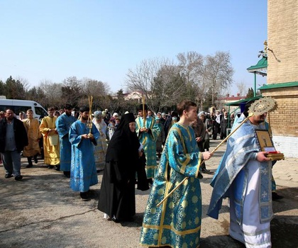 После заамвонной молитвы и отпуста Литургии митрополит Викентий совершил Крестный ход вокруг собора, а затем поздравил всех прихожан с престольным праздником, отметив: